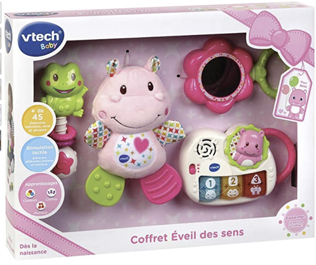 Coffret naissance avec un piano, un hochet, un miroir,…